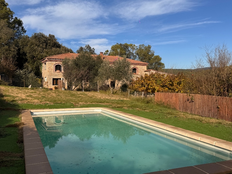 Outside, we find the entire 20,000 m2 plot of land, with a forest area and a garden area at the front of the farmhouse, where the parking and pool area are located.