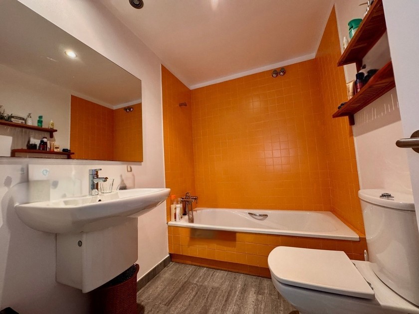 PLANTA PRIMERA, de *64m2 construidos: Cuarto de estar-comedor con balcón con vistas en el mar, cocina equipada, suite con armarios empotrados y balcón también con vistas en el mar.