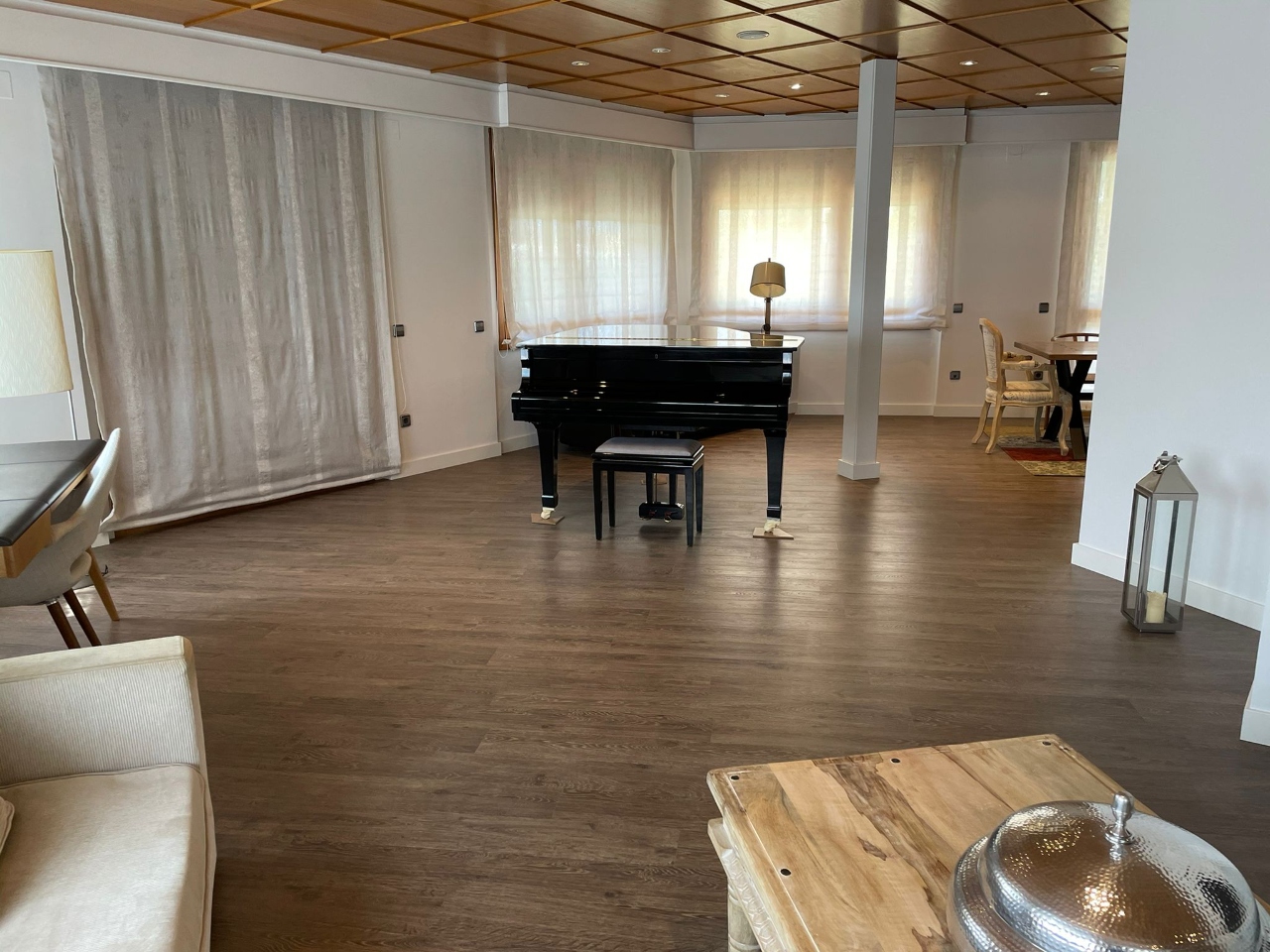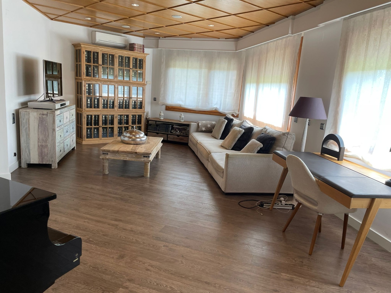 #️⃣ TERCER HABITATGE: A primera planta trobem sala d´estar molt àmplia amb sortida i vistes al jardí, un bany complet, cuina totalment equipada amb sortida a terrassa.