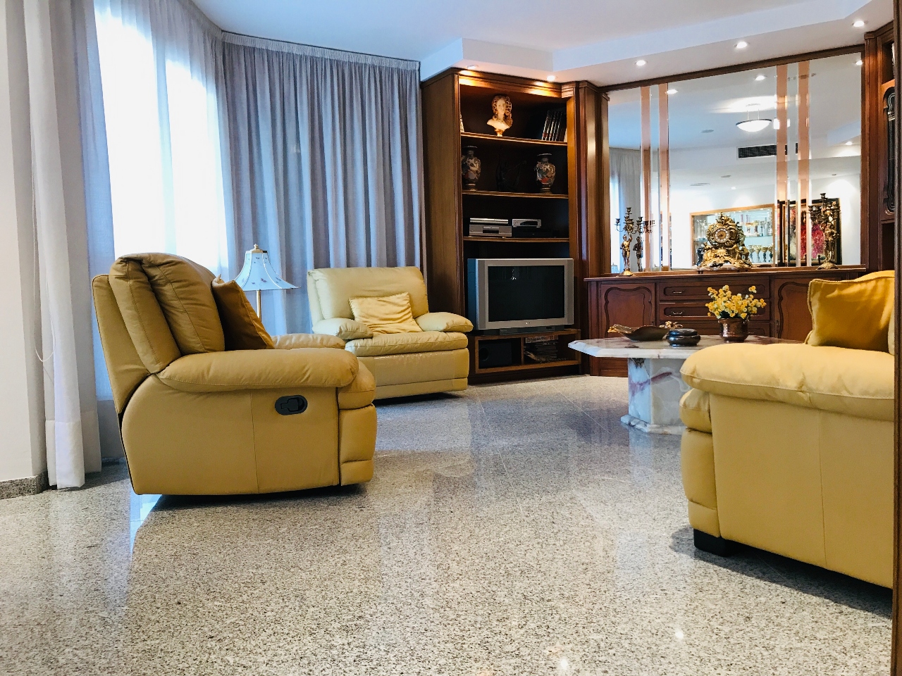 #️⃣ PRIMER HABITATGE: Àmplia entrada principal amb armaris encastats, saló-menjador molt assolellat amb accés a terrassa, bany complet, cuina totalment equipada amb sortida a terrassa, suite amb accés a terrassa i habitació doble amb sortida tots dos amb armaris encastats.