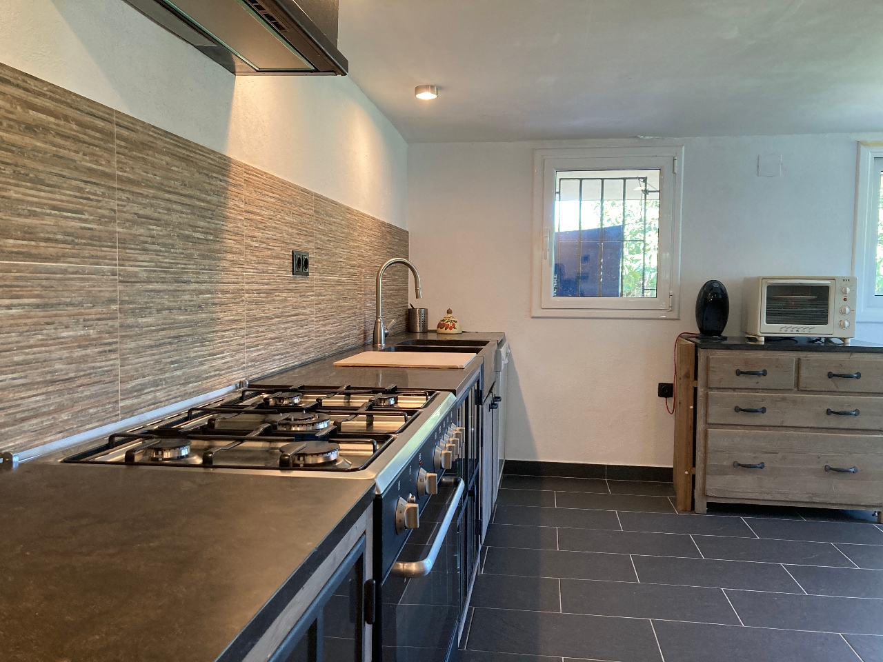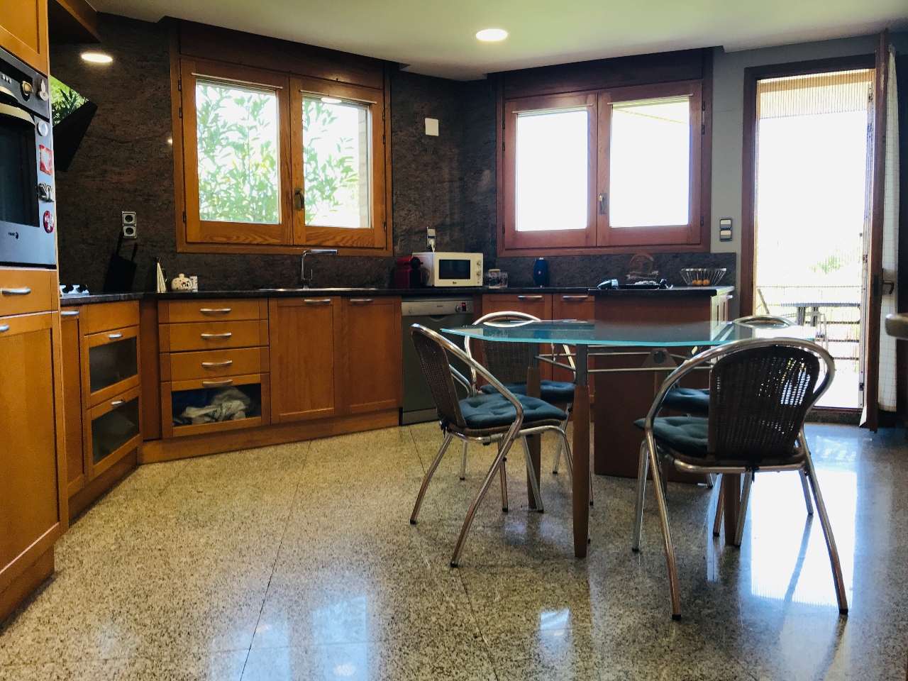 #️⃣ SEGONA HABITATGE: En entrar trobem àmplia-senyorial entrada principal, ampli saló-menjador amb llar de foc i accés a jardí, cuina totalment equipada amb accés a jardí, bany complet i habitació amb accés a l´exterior i armaris encastats.