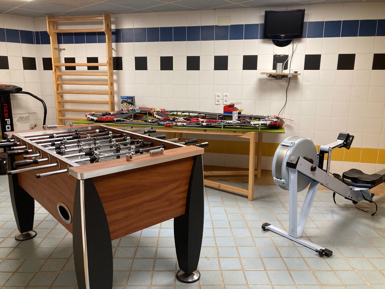 Sala polivalent que actualment trobem sauna i dutxa d´hidromassatges i sala de jocs.