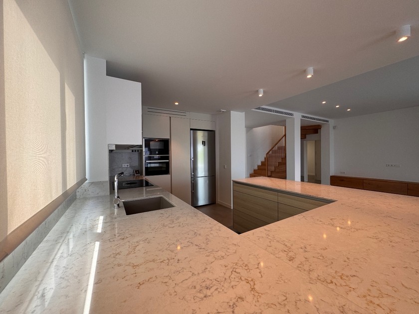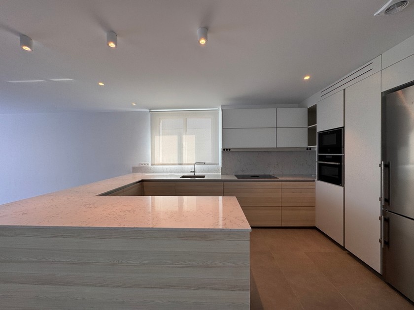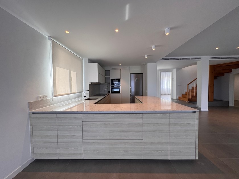 Electrodomèstics de gran qualitat, rentadora i secadora BOSCH. Cuina amb rentaplats integrat i gran capacitat d´emmagatzematge amb portes d’obertura amb un sol click.