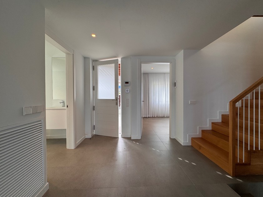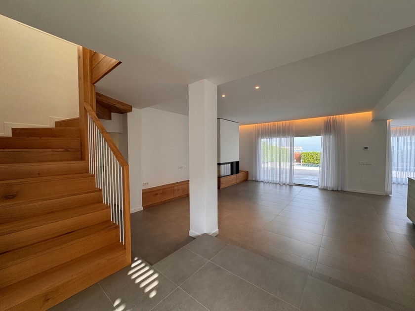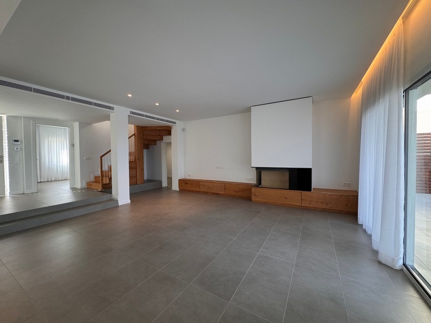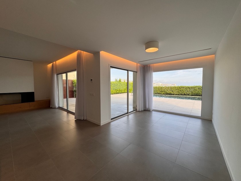 ☑️ PLANTA BAIXA, 120 m2 construïts: Entrada, gran sala d’estar-menjador amb llar de foc i cuina amb illa central, tot en un sol espai amb sortida a jardí i vistes al mar, servei de cortesia i zona de rentador, dos dormitoris dobles amb armaris encastats, un d’ells amb sortida al jardí, un bany complet amb dutxa i garatge per un cotxe. Dins de la parcel·la, dues places de pàrquing descobertes.