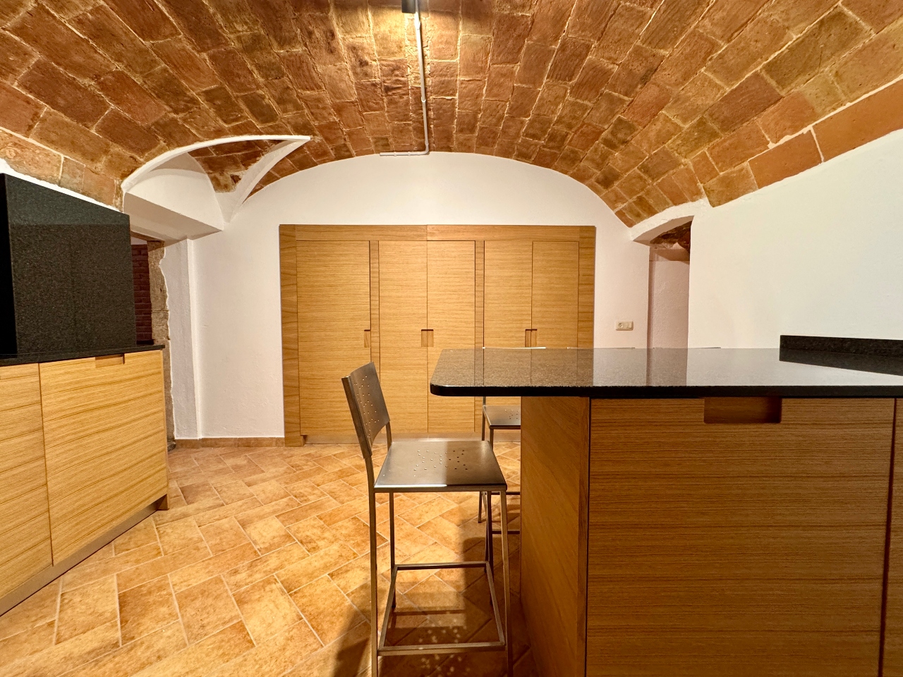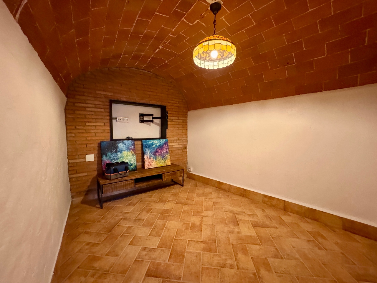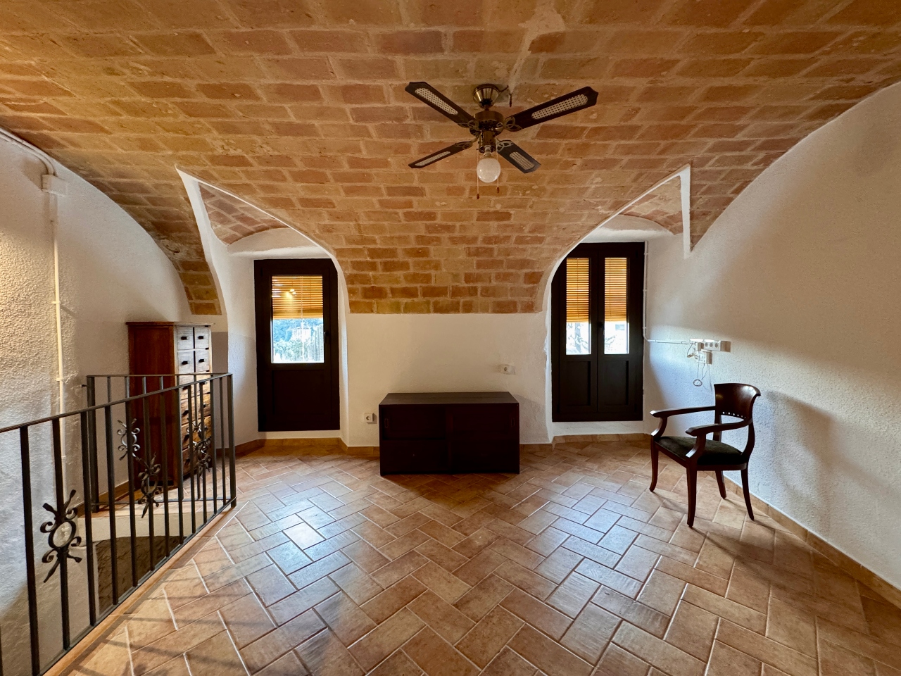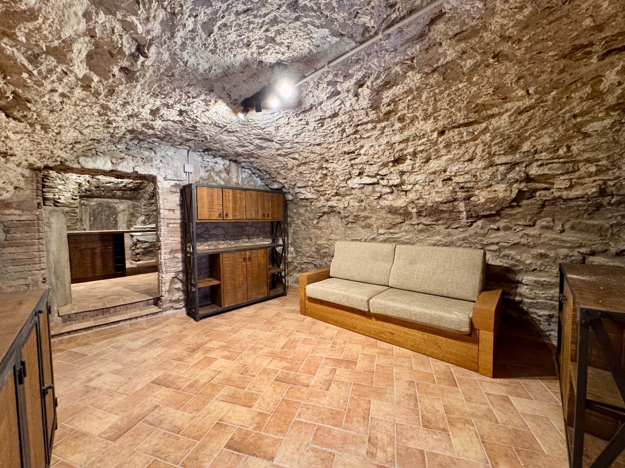 Planta Primera: sala d’estar, sala cinema, cuina office amb llar de foc totalment equipada, sala distribuïdora amb sortida al carrer de darrera, bany complet amb dutxa i sala de màquines.