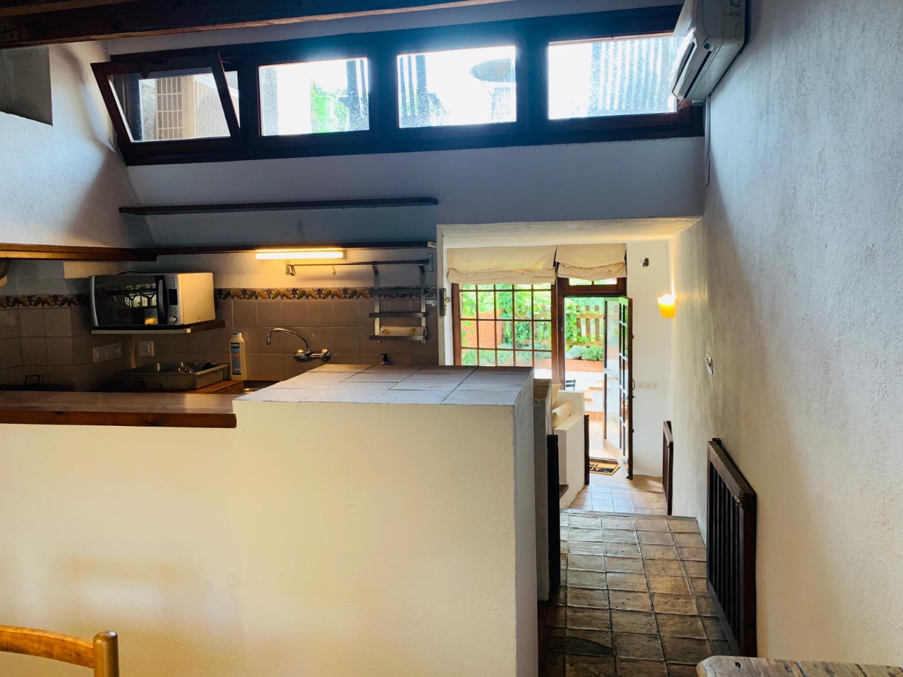 En planta baixa: entrant a la casa, rebedor, un lavabo, saleta d’estar amb llar de foc i, celler/traster per guardar llenya, rentadora i assecadora.