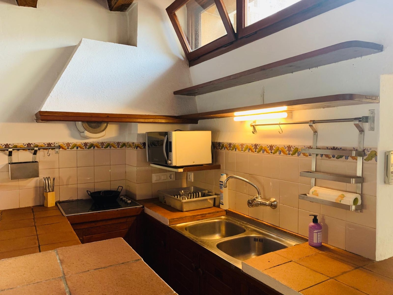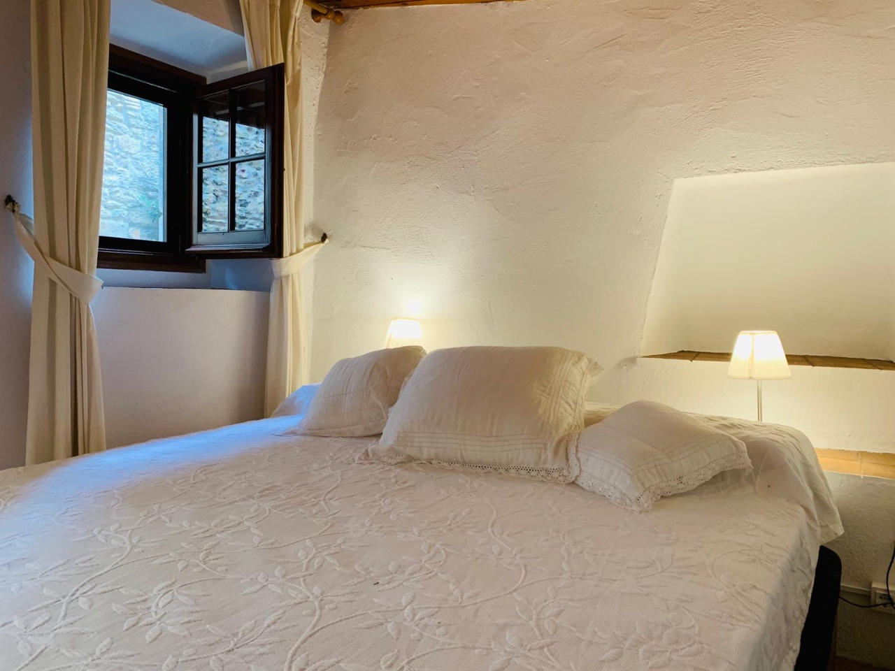 En planta primera; dues habitacions dobles (una amb llit de matrimoni i l’altre amb dos llits) i bany complet amb banyera.