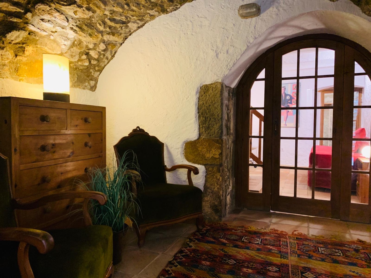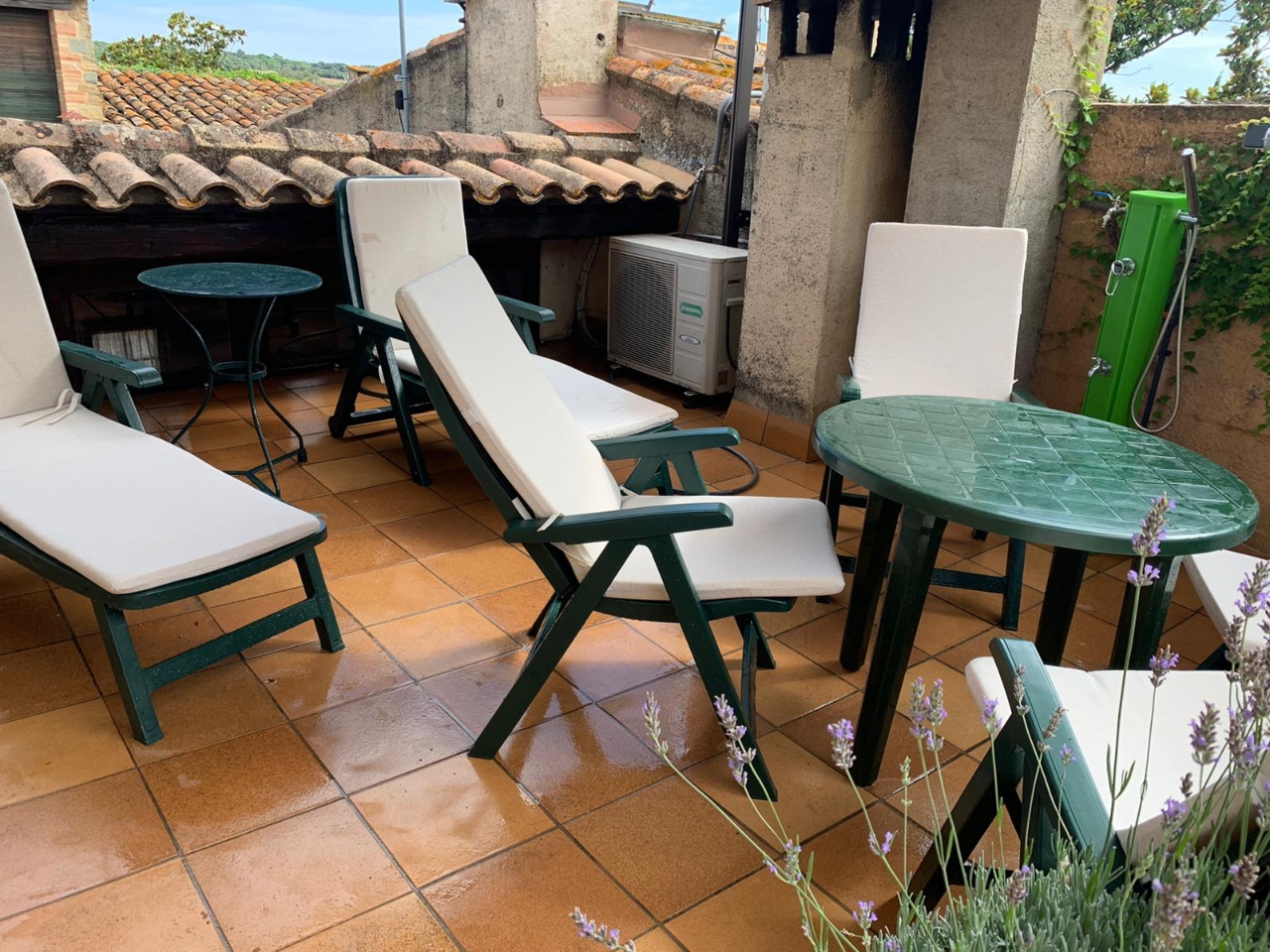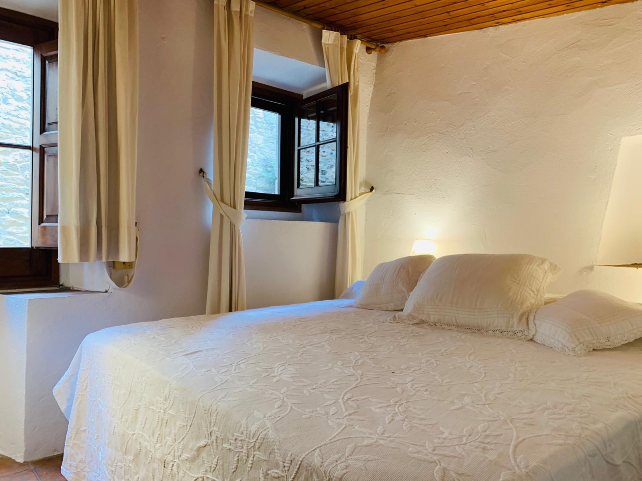 Casa de pedra al centre de població, de 120 m2 aproximadament i dues sortides d’uns 10 m2 i 15 m2 (on disposa també de dutxa solar, taula, cadires d’exterior i gandules) aproximadament cadascuna.