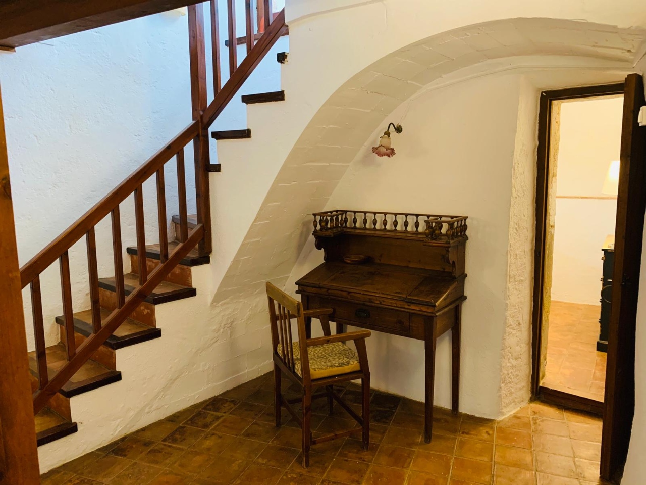 En planta segona; sala d’estar amb llar de foc, cuina (amb vitroceràmica, nevera, microones, forn), menjador i sortida a terrassa, aquesta terrassa ens condueix a través d’unes escales a una segona terrassa que gaudeix de bones vistes.